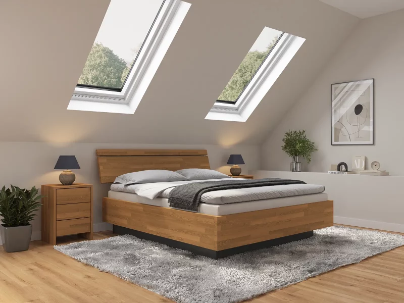 | Bettrahmen | Modell Bergen - 4 cm Eiche Massivholz |
