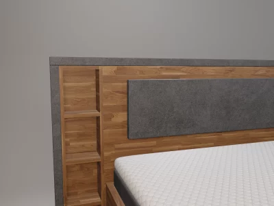 - Kopfteil Stockholm: aus Massivholz, integrierte Regale, Polsterumrandung