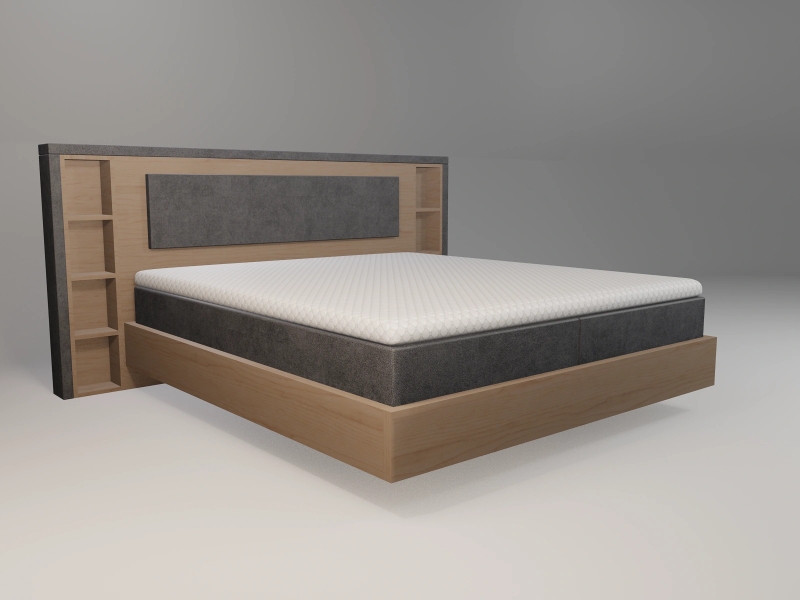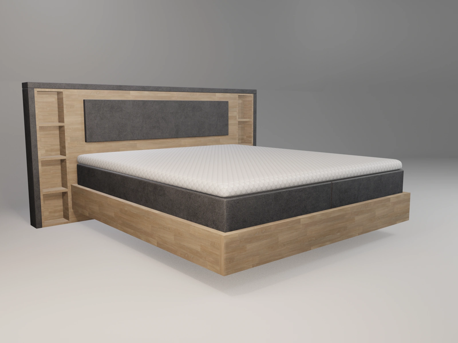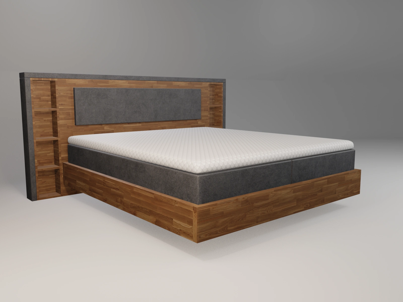 Das prägnante Stockholm-Kopfteil mit seinen integrierten Regalen bietet nicht nur Platz für Bücher, Fotos oder Dekoration, sondern setzt auch stilvolle Akzente. Die Umrandung aus 4 cm starkem Massivholz ist oben und unten abgerundet, was ein angenehmes Ein- und Aussteigen ermöglicht. Dieses einzigartige Design lässt das Bett wie ein klassisches Holzbett wirken und verleiht Ihrem Schlafzimmer eine warme, einladende Atmosphäre.