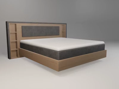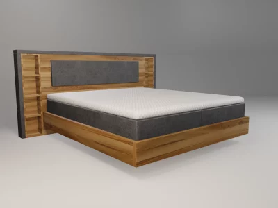 | Kopfteil | Modell Stockholm, umlaufender Stoffrahmen, Mittelteil aus Massivholz mit Regalelementen |