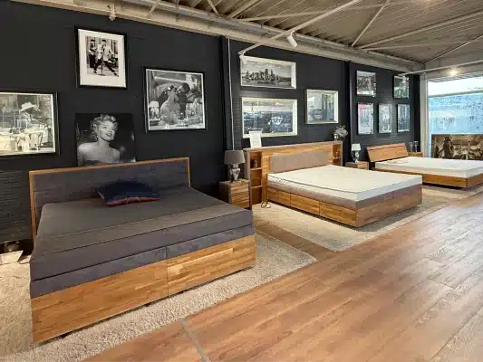 In unserer Ausstellung erwarten Sie echte Materialien zum Anfassen, persönliche Beratung und ein Ambiente, das zum Probeliegen und Inspirieren einlädt.