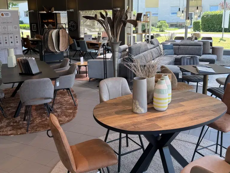 Ergänzt wird das Sortiment durch eine stilvolle Auswahl an Esstischen und Stühlen – abgestimmt auf ein harmonisches Wohn- und Schlafzimmerambiente.
