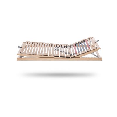 - Mittel-/Beckenzone: 2 Doppelleistenpaare mit innovativem Transparentband gegen unabsichtliches Verrutschen verbun-den, mit 8 arretierbaren MZV-Schiebern zur Härteregulierung, mit 4 mech. Höhenverstellern (5-stufig, arretierbar)