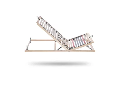 - Lordosezone: 2 Doppelleistenpaare mit innovativem Transparent-band gegen unabsichtliches Verrutschen verbunden, mit 4 mech. Höhenverstellern (5-stufig, arretierbar), mit 8 arretierbaren MZV-Schiebern zur Härteregulierung