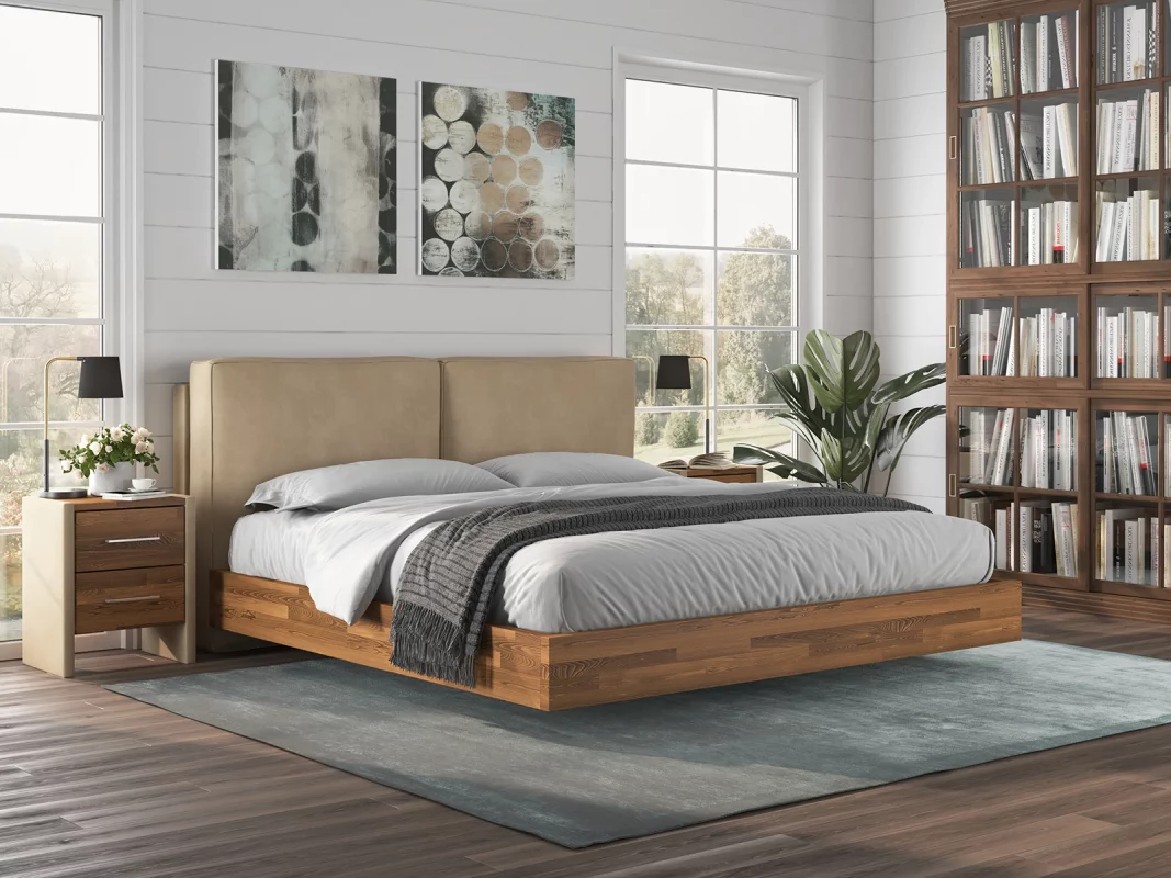 Wählen Sie aus verschiedenen Holzarten, Kopfteilen und Stoffen und stellen Sie Ihr Bett ganz nach Ihren Wünschen zusammen.
